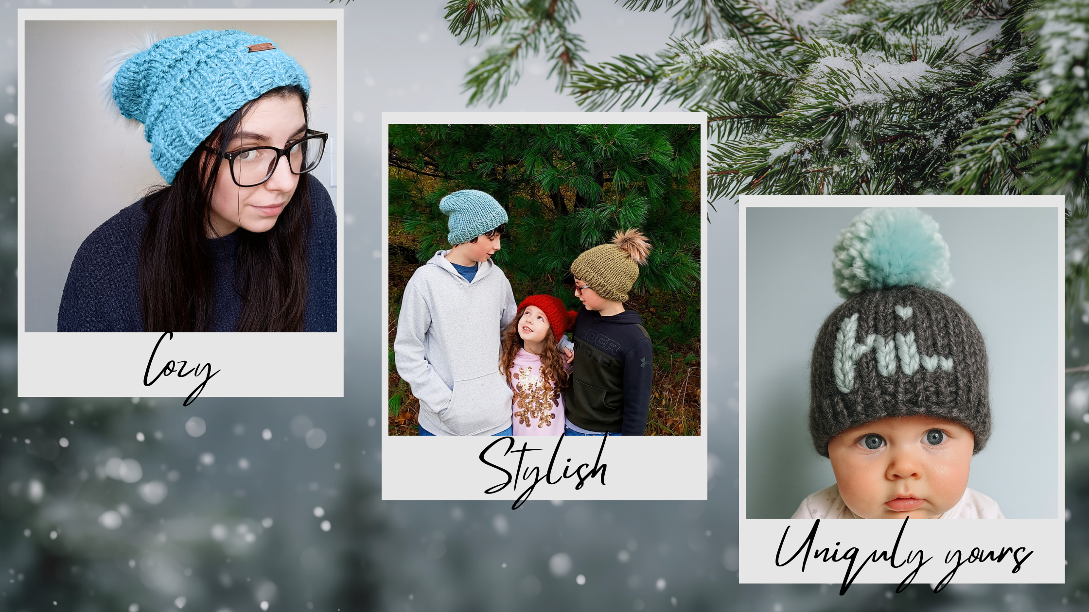 From crisp porch mornings to playful park strolls, my beanies are designed to wrap every moment in warmth and charm. Whether you're sipping coffee in a headwrap, twirling in pom-poms, or snuggling a sleepy babe in knits, each piece is crafted to celebrate your story. Inclusive, heartfelt, and full of seasonal magic, our cozy wear invites you to show up exactly as you are: stylish, snug, and unmistakably you.